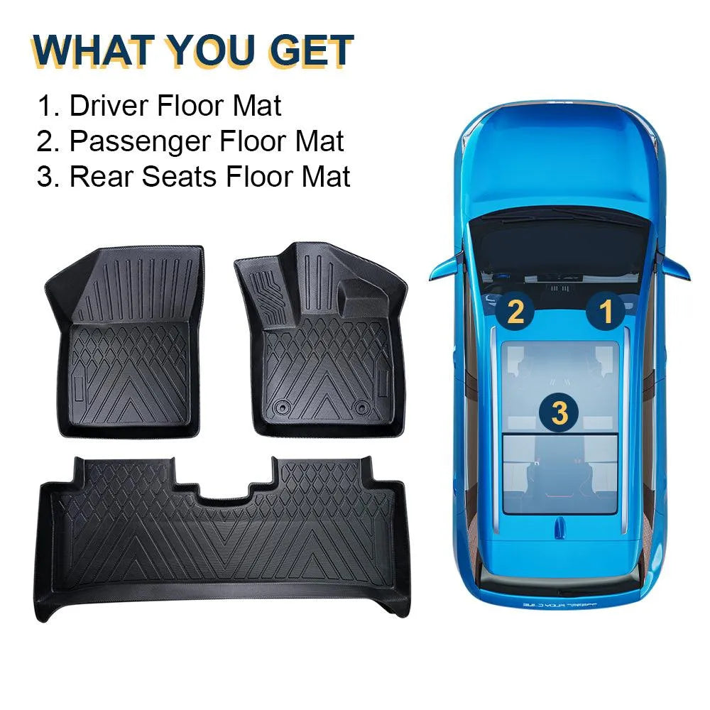 Premium Materials: Made from high-quality TPE and carpet, these mats combine softness, comfort, and durability for long-lasting interior protection.